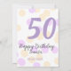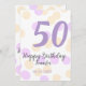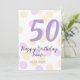 Cartão De Agradecimento 50th birthday add name date purple orange polkadot