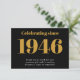 Cartão De Agradecimento 80th Birthday 1946 Retro Black And Gold