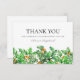 Elegant holly sprigs create a pretty flat birthday thank you card. Holly is the December Birth Flower. So this is a perfect floral design for a December birthday. Open and airy script spells thank you. Two lines of text let you personalize a thank you statement and your name. All of the text is editable.