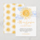 Are you planning a sun-themed baby shower? This cute sunshine baby shower thank you card features the text "A little ray of sunshine is almost here!" with a watercolor smiling yellow sun and clouds. The back is decorated with a sun pattern. Perfect for a gender-neutral baby shower. Easily customizable. Original Watercolor © Michele Davies.