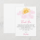 This cute girl's baby shower thank you card is decorated with a yellow watercolor sun, clouds, and stylish pink typography. Easily customizable. Original Watercolor © Michele Davies.