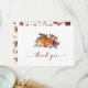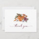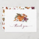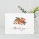 Cartão de Agradecimento Abóbora. Celebre as festividades de outono com abóboras pintadas à mão em aquarela, flores de outono burgundy e terracota, botânicos verde floresta e ferrugem, e caligrafia manuscrita burgundy. Deixe-nos ajudá-lo a tornar seu casamento, chá de panela de noiva ou de bebê ainda mais especial com um lindo cartão de agradecimento.
