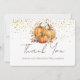 Um cartão de agradecimento com tema de abóbora de outono magnífico. Este convite fabuloso apresenta abóboras rústicas de outono com folhas em tons terrosos quentes e cores laranja. Fácil de personalizar com os detalhes do seu casamento, aniversário ou outros agradecimentos.
