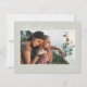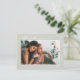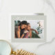 Uma pintura trava aquarela em tons cintilantes de verde-oliva com salpicos de lavanda acentua as peças desta bela suíte de casamento. O cartão de casamento 'Obrigado' mostrado aqui também mostra sua própria foto enquadrada em um fundo verde sábio e um layout impressionante que a faz sobressair da multidão. Adicione sua foto, obrigado pessoal, sua mensagem, nomes e data de casamento usando o modelo fornecido. Procure ID886 para ver outras opções de cores e peças de coordenação para esta coleção de casamento única.