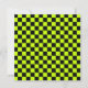 A vibrant checkerboard pattern with alternating neon yellow and black squares creates a striking geometric design, conveying a bold and energetic tone.