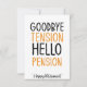 Adeus, pensão de olá de tensão! Feliz aposentadoria! Design de aposentadoria divertida para o novo aposentado! Dê um presente de excelente para a aposentadoria. Este design está disponível em t-shirts, capuzes, roupa, canecas, canecas de viagem, chaveiros, e muito mais! Personalizável, usando a ferramenta PERSONALIZAR TI. Adicionar um nome, uma data ou qualquer outro texto. Escolha suas cores de fundo nas canecas, adesivos, botões, cartões, chaveiros, mousepads e muito mais. As empresas podem fazer pedidos em massa e tê-los em mãos para seus aposentados.