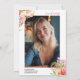 Um design romântico de agradecimento de formatura apresentando flores pintadas à mão em aquarela em tons de rosa, lavanda, pêssego, amarelo dourado e verde suave. O fundo branco arejado mantém o layout refinado e moderno, enquanto o título em letra cursiva rosada fluída adiciona calor e personalidade.