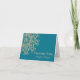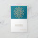 Um lindo cartão de agradecimento AQUAMARINE AQUA BLUE e dourado com tons de joia, com um padrão exótico e étnico de medalhão de sari ornamental luxuoso e sofisticado inspirado na Índia, com um desenho floral e de explosão de lótus. Este cartão de agradecimento elegante e bonito em estilo indiano moderno é perfeito para qualquer ocasião formal ou especial, incluindo festa de aniversário, chá de casal ou de noiva com tema de noites árabes indonésias ou marroquinas ou Aladdin. Design © Chrissy H. Studios, LLC. Todos os direitos reservados.