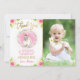 Algum Coelho Rosa Floral Dourado Brilho Foto Aniversário Obrigado Cartão