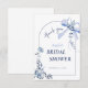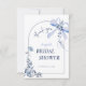 A coleção de chá de panela "Something Blue Before I Do" oferece uma mistura perfeita de elegância e charme boêmio. O design apresenta um arco gracioso adornado com um delicado laço azul, criando uma atmosfera serena e sofisticada. Ao redor do arco estão flores azuis pintadas à mão em aquarela, adicionando um toque de beleza caprichosa. Os detalhes florais intrincados são complementados por linhas sutis e fluidas que evocam elegância natural. Esta papelaria captura a essência da tradição com um toque moderno, tornando-a uma escolha ideal para celebrar o dia especial da noiva com estilo. A paleta azul suave não apenas homenageia o costume de casamento querido, mas também cria uma atmosfera calmante e convidativa para os convidados. Por favor, entre em contato conosco para obter assistência de design através do Zazzle Chat. Teremos certeza de responder dentro de 12 horas.