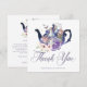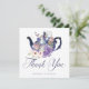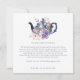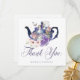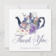 Agradeça aos seus convidados com nosso cartão de agradecimento de casamento temático da Alice no País das Maravilhas, lindamente desenhado no estilo vintage. Perfeito para um casamento temático da Alice no País das Maravilhas. O design apresenta um bule de chá vintage com uma mistura de flores e ilustrações originais desenhadas à mão. Restauramos meticulosamente as ilustrações vintage icônicas da Alice no País das Maravilhas, desenhando-as à mão e trazendo-as à vida com belos tons de aquarela e nosso toque pessoal. O design apresenta nossas flores originais desenhadas à mão em aquarela e uma borboleta. Pares de texto elegantes e no estilo vintage aprimoram esse tema mágico, caprichoso e icônico da Alice no País das Maravilhas. Design por Moodthology Papery