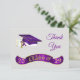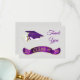 Roxo e cartões de agradecimentos da graduação do ouro com almofariz, diploma e fita com texto "classe" do escrito no estilo gótico