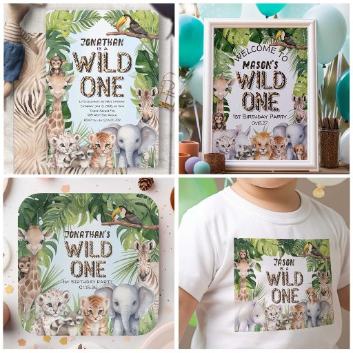 Wild one Jungle Safari Animals Boy 1st birthday Criado por Pixelia Designs
