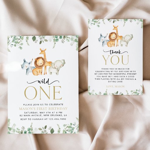 Cartão De Agradecimento Animais Safari, Selva, Selvagem Um, Primeiro Anive
