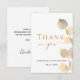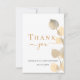Um cartões de agradecimentos para um aniversário de 50 anos (ou qualquer idade). Um fundo branco chic decorado com eucalipto ouro. Na frente, o texto com letras grandes e o texto: Obrigado, seu texto, título e uma data. Texto ouro e preto. Voltar: Personalize e adicione seu nome e nota de agradecimento.