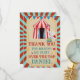 Aproxime-se e prepare-se para espalhar gratidão com nosso cartão de agradecimento de aniversário infantil temático de circo "Over the Top"! Este cartão não é apenas um agradecimento comum; é uma maneira espetacular de expressar sua apreciação a todos os convidados maravilhosos que tornaram a festa de aniversário do seu filho uma extravagância circense inesquecível.