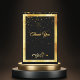 Um fundo preto e uma moldura dourada falsa. Com uma chuva de confetes dourados. Na frente, uma fonte moderna de letra desenhada à mão e o texto: Obrigado e um enfeite floral dourado falso.