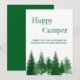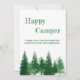 Feliz aniversário de camper com árvores florestais em vários tons de verde