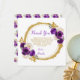 Cartão De Agradecimento Aniversário das Flores Elegantes Douradas e Roxas
