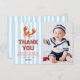 Mergulhe no mundo encantador de cartas de agradecimento que vão prender seus convidados do partido! Nossas cartas adoráveis têm uma design de lagosta cativante, um fundo náutico listrado, e o ingrediente mais crucial - uma foto do seu filho! Adicione o toque final com uma mensagem pessoal e mergulhe em estilo e charme inesquecíveis.