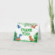 Este design de dinossauro é ótimo para o menino aniversariante da sua vida. Dê a eles um aniversário dino-mite com este design temático de dinossauros com um trex, triceratops, brontossauro e raptor, para que eles possam agradecer aos convidados por comparecerem à sua festa e pelos presentes.