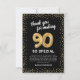 Elegante festa de aniversário 90, obrigado cartas com um fundo na moda preto que pode ser mudado para qualquer cor, brilho brilhante dourado, noventa balões de hélio dourado, e um obrigado moderno que você modelo é fácil de personalizar.