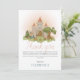 Este cartão de agradecimento de aniversário fofo e caprichoso apresenta um castelo encantado cor-de-rosa caprichoso, com um príncipe, princesa e flores. O design perfeito de conto de fadas mágico para o aniversário das crianças!
