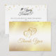 Cartões de agradecimento elegantes em dourado e branco metálico falso com confete dourado personalizáveis para qualquer aniversário de casamento, apresentando monograma de corações dourados interligados e a escrita cursiva AGRADECIMENTO na frente e um design de tipografia elegante #ANOS RUMO À ETERNIDADE e sua mensagem de agradecimento pré-impressa opcional no verso ou exclua o texto de exemplo para deixar o verso em branco para notas pessoais manuscritas de agradecimento. Entre em contato com o designer via Zazzle Chat ou makeitaboutyoustore@gmail.com se desejar que este design seja modificado, em outro produto ou itens coordenados.