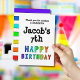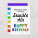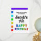 Compartilhe sua gratidão com este cartão personalizado de agradecimento de aniversário cor de arco-íris! A frente apresenta texto personalizado: “Obrigado por vir & celebrar” com o nome e a idade da pessoa que faz aniversário, seguido de letras em negrito cor de arco-íris "Feliz Aniversário" delineadas em preto. A parte de trás apresenta sete listras delineadas em arco-íris do roxo ao vermelho para um acabamento colorido e festivo. Uma maneira brilhante e alegre de agradecer a amigos e familiares após qualquer celebração de aniversário!