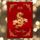 Elegante Cartão de Agradecimento Vermelho e Dourado do Ano do Dragão do Ano Novo Chinês. Vire o cartão e use as ferramentas de design para personalizar seu texto.