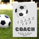 Cartão moderno de agradecimento ao treinador de futebol. O cartão tem uma bola de futebol preto e branco. Ótimo cartão para agradecer treinadores esportivos, treinador de equipe de escola secundária, treinador pai ou mãe, etc. Personalize qualquer texto no cartão. Adicione o nome do treinador, nome da equipe e ano.