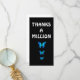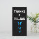 Apresentando meu design de cartões de agradecimentos personalizável, com a inscrição elegante "OBRIGADOS A MILHÃO" enfeitiçada com três borboletas azuis encantadoras contra um pano de fundo de preto elegante. Este design versátil permite que você personalize esta placa com seu próprio logotipo de texto ou foto, acrescentando um toque pessoal às suas expressões de gratidão. Ideal para indivíduos que valorizam estilo e sentimentalidade, esta carta é perfeita para agradecer a amigos, família, colegas, professores, clientes ou qualquer pessoa que mereça apreço. Seja para uma ocasião especial ou para um simples gesto de obrigados, este cartão deixa certamente uma impressão duradoura com a sua elegância eterno e charme personalizável.