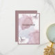Este cartão de agradecimento é parte de um conjunto de casamento em lâmina de ouro rosa com aves em aquarela burgundy.