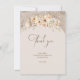 O design moderno para cartão de agradecimento apresenta flores silvestres elegantes em aquarela em cores terrosas da moda – marfim, bege, tons de marrom claro, branco e toque de rosa, delicadamente tecidas em arco boho.