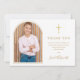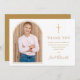 Apresentando um elegante arco dourado e nome de assinatura de script. Personalize com sua foto e seu primeiro obrigado especial de comunhão sagrada você envia uma mensagem em letras de ouro chic nesta design na moda. Projetado por Thisnotme©