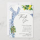 Expresse sua gratidão com este elegante cartão de agradecimento inspirado na Itália, perfeito para um chá de noiva La Dolce Vita italiano ou um tema de chá de noiva de Positano. Com vibrantes desenhos de limão e folhagens exuberantes que lembram a Costa Amalfitana, este cartão captura a calidez e o charme de uma celebração de verão mediterrânea. O design atemporal combina perfeitamente com qualquer decoração de chá de noiva mediterrâneo, tornando-o a maneira perfeita de agradecer aos seus convidados por fazerem parte do seu dia especial. Encomende agora para adicionar um toque da Itália às suas notas de agradecimento sinceras!