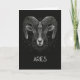 Cartão de saudação dobrado personalizado com interior de vazio com constelação de sinal de Aries zodiac com tipografia mística "Aries" sobre fundo preto.