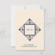 Cartão de agradecimento de design boho vermelho branco e azul com adorno floral na borda e desenho de losango no verso. Vem com área de código QR (pode ser excluída para revelar o padrão floral) e campos simples personalizáveis para nomes, data, local e informações de contato.