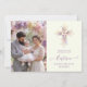 Artistic Lilac Floral Christian Cross Baptism Thank You Photo Card Design,
