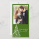 Obrigado seus convidados por presentes recebidos após uma festa de noivado festiva de dezembro, chá de panela ou casamento com a elegante Árvore de Natal Verde Obrigado Cartão com fotos. Altere a cor e a fonte do plano de fundo, se desejar. Este obrigado de inverno personalizado elegante que você cartões de fotos apresenta um design branco suave de árvore de xmas em um fundo verde.