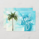 Linda aquarela moderna OBRIGADO VOCÊ a fazer cartas com texto na frente. Azul, lacre, turquesa, cores (água, design de praia) com palmeira. Letras de script. VOLTA DO CARTÃO é vazio e opção para adicionar sua mensagem manuscrita. Perfeito para qualquer destino sul, tropical, praia, Havaí... casamento.