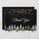 Árvores pretas de Natal quentes brilham as luzes de feriado monograma cartões de agradecimentos. Um cartão de Natal bonito e brilhante. Perfeito por enviar para a família ou amigos para o feriado ou qualquer outra celebração. Para torná-lo mais especial, ele é embelezado com belos brilhos falsos. Este design também pode ser transferido para qualquer produto do zazzle. Você pode personalizá-lo com seu próprio texto e informações. NOTA: Estes são gráficos impressos - sem brilho real, joias ou peças levantadas