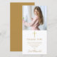 Com nome de assinatura em escrita dourada. Personalize com sua foto e mensagem especial de agradecimento do primeiro comunhão em letras douradas elegantes neste design sofisticado. Criado por Thisisnotme©