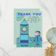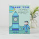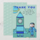 Cartão de Agradecimento Astronauta Menino Lua Insira seu Rosto. Um menino astronauta na Lua com sua nave espacial. As cores são azul e turquesa. Insira sua foto e seu texto.