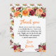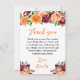 Cartão De Agradecimento Autumn Burgundy and Orange Floral Bridal Shower