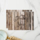 Placas de madeira envelhecidas e textura de linho com pontos de cartões de agradecimentos rústico.