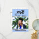 Graduação moderna agradece cartões com grandes números ousados por ano e boné de formatura.  Adicione a sua fotografia / imagem do formando na horizontal com linhas de quadro.  Nome do formando.  Cor: azul claro.  De trás tem espaço para escrever texto e citação ou nomes de pais.  Perfeito para jardim de infância, segundo grau, faculdade, universidade ou exército/marinho ou medicina, enfermeira....