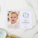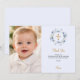 Cartão De Agradecimento Azul de batismo florais foto menino cruz de ouro