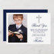 O Elegante Cartões de agradecimentos da Primeira Comunhão com a Cruz de Prata. Frente fotográfica. Script Azul do marinho.