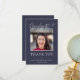 Elegante e elegante, um texto fotográfico branco "Obrigado" design de graduação da faculdade azul ou universidade por Designs Holiday Hearts com mensagem simples e detalhada, fechando e assinando em branco no verso. Se você preferir um vazio de volta, simplesmente exclua.